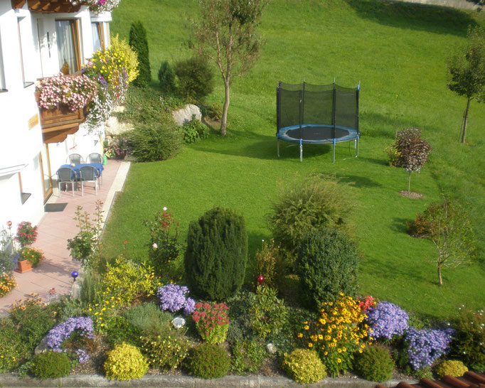 Für die Kinder steht im Sommer ein Trampolin bereit.